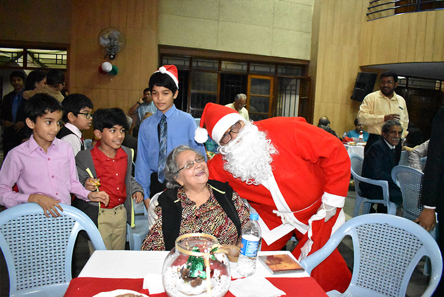The mass was a solemn prayerful celebration, Fr.Trascius Fernandes was the main celebrant, ably assisted by Fr Francis Pinto. The choir, led by Aldrin DSouza were superb, or so I was told numerous times! As a part of the choir myself, I absolutely enjoy the process of learning and singing these konkani hymns once a year! After mass, we moved to the hall next door and were greeted by the traditional feast snack of chouriz pao, cadio bodeo & boiled channa, transporting us right back to Old Goa! Nostalgic indeed!! In short order, our cheerful and bubbly MC for the evening Sammy Pasha got the party started and soon the good times were rolling! Games, a live band, dancing, feni and of course Santa with presents for all the kids made the party ROCK! The highlight of the evening were the Excellence Awards presented to the high achievers - 8 kids and youth of our community were honored for their outstanding performances during the past year!